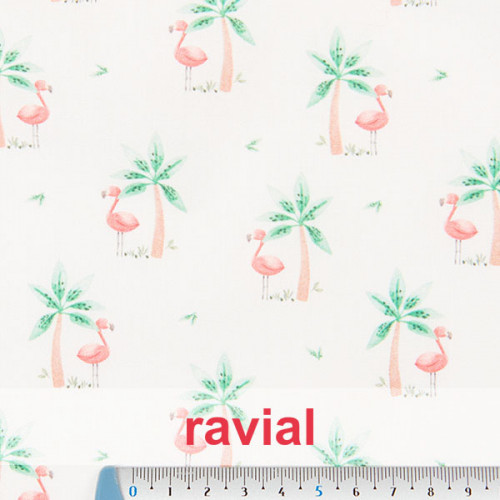 Cotton poplin fabric. Flamingo and palm tree print.