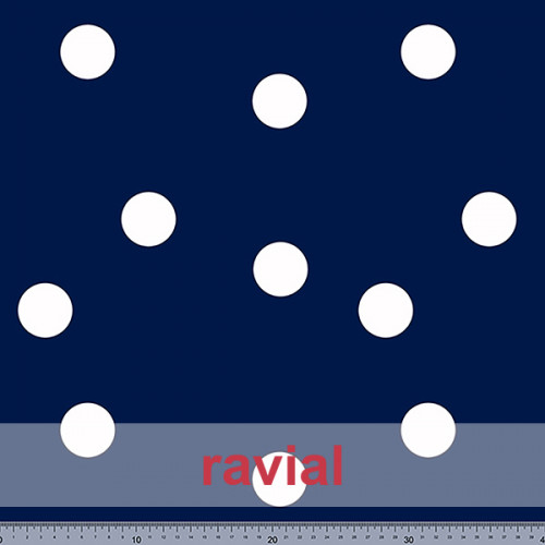 Tela de punto con estampado de lunares de 4,00 cms. Tejido especial para faldas de ensayo.