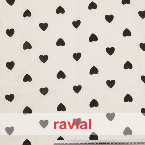 Tissu Bambula avec impression de cœurs d'enfants.