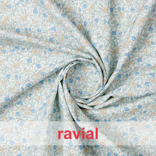Tissu en coton imprimé de petites fleurs.