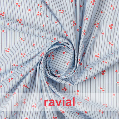 Tissu popeline de coton doux avec imprimé rayures et petites fleurs.