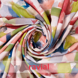 Viscose. Tissu doux imprimé très fluide. Imprimé abstrait.