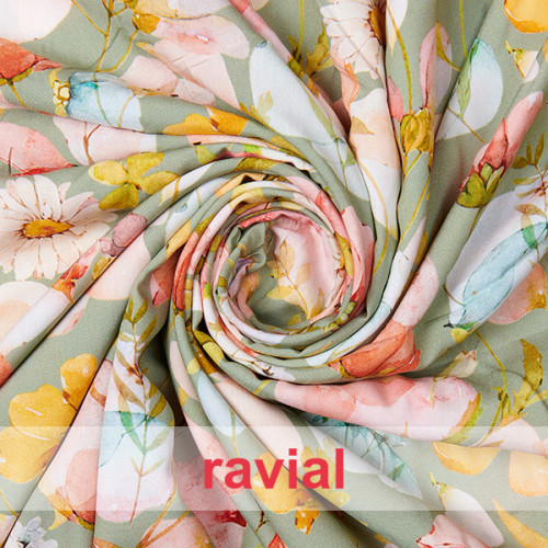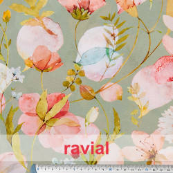 Viscose. Tissu doux imprimé très fluide. Imprimé floral.