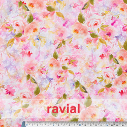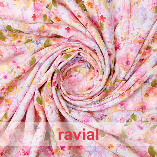 Viscose. Tissu doux imprimé très fluide. Imprimé floral.