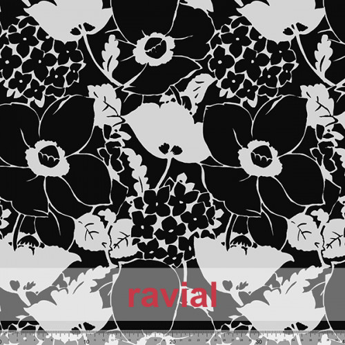 Tejido de piel de ángel elástica con estampado flores.