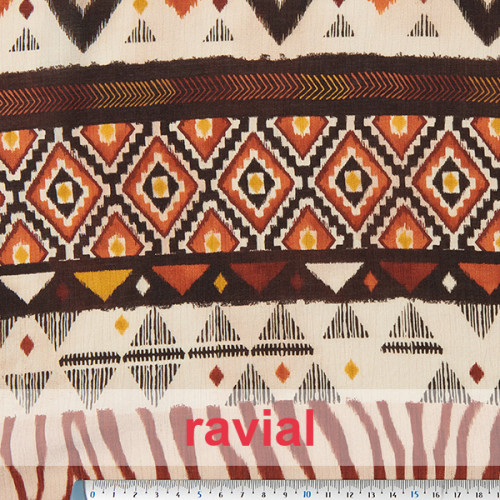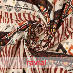 Tissu froissé à motifs géométriques avec bordure.