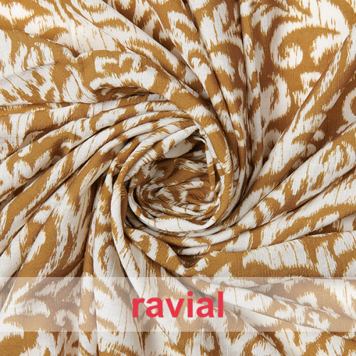 Tissu froissé avec imprimé fleurs et branches.