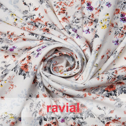 Tejido de crespón suave, con algo de elasticidad. Estampado de flores pequeñas.