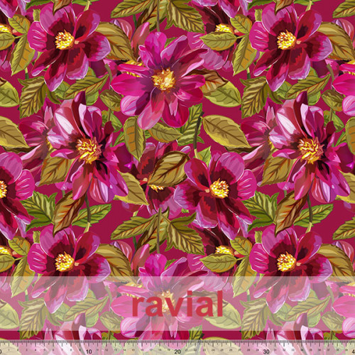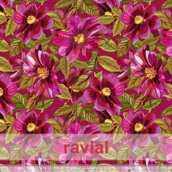 Tejido de poliéster reciclado tipo crep. Estampado de flores.