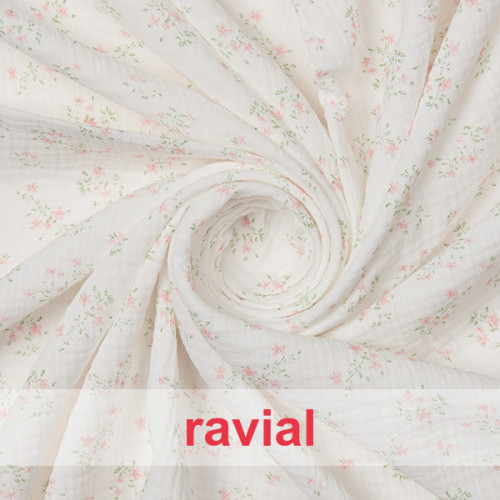 Tejido de bambula con estampado de flores.